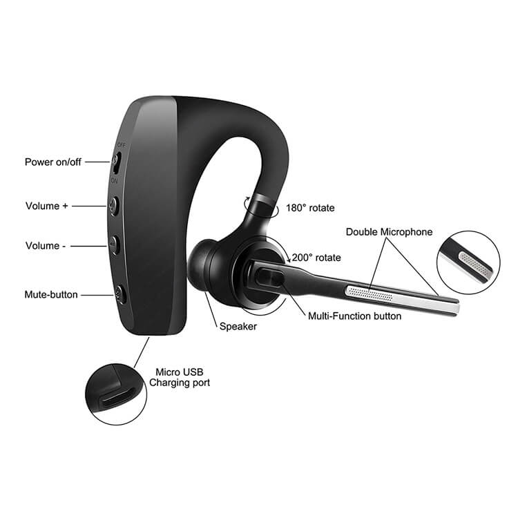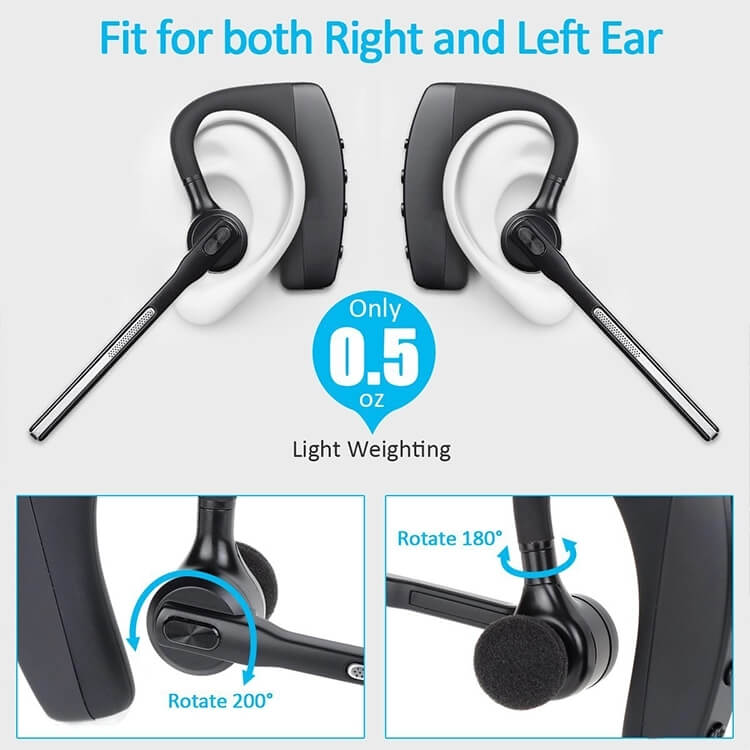 Bluetooth single earbuds headsets for skype for business ,microphone can be rotaed 180 degrees and wear in right and left ear.it’s binaural headset.